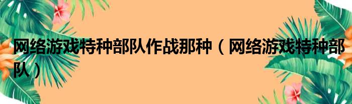 網絡游戲特種部隊作戰那種(網絡游戲特種部隊)
