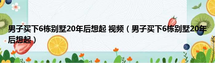 男子買下6棟別墅20年后想起 視頻(男子買下6棟別墅20年后想起)