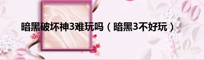 大家好,小霞來為大家解答以上的問題。暗黑破壞神3難玩嗎,暗黑3不好玩這個很多人還不知道,現在讓我們一起來看看吧!