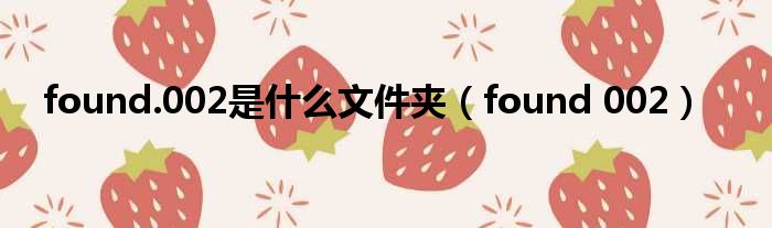 大家好,小霞來為大家解答以上的問題。found.002是什么文件夾,found 002這個很多人還不知道,現在讓我們一起來看看吧!