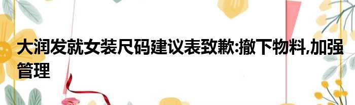 大家好,小霞來為大家解答以上的問題。大潤發就女裝尺碼建議表致歉:撤下物料,加強管理這個很多人還不知道,現在讓我們一起來看看吧!