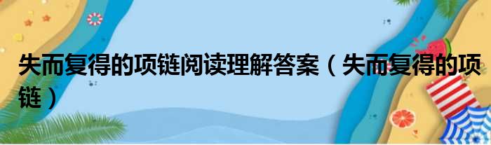 導讀 大家好,小霞來為大家解答以上的問題。失而復得的項鏈閱讀理解答案,失而復得的項鏈這個很多人還不知道,現在讓我們一起來看看吧!1、是而復