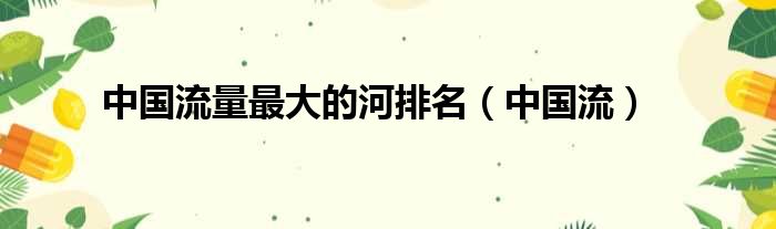 中國流量最大的河排名(中國流)