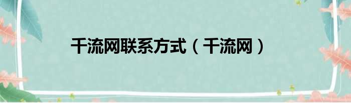 大家好,小霞來為大家解答以上的問題。千流網聯系方式,千流網這個很多人還不知道,現在讓我們一起來看看吧!