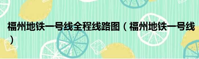 福州地鐵一號線全程線路圖(福州地鐵一號線)