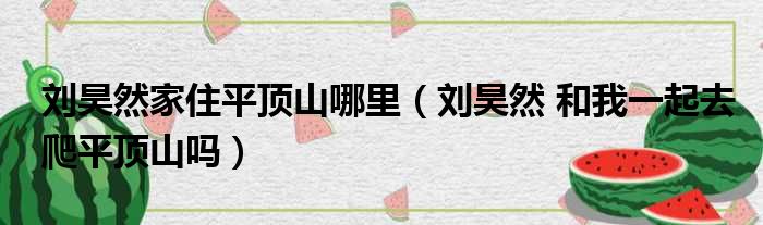 劉昊然家住平頂山哪里(劉昊然 和我一起去爬平頂山嗎)