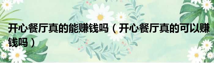 開心餐廳真的能賺錢嗎(開心餐廳真的可以賺錢嗎)
