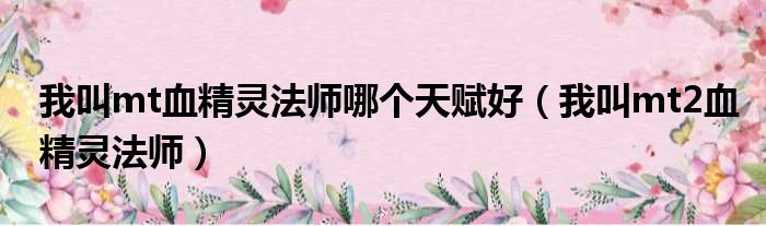 大家好,小霞來為大家解答以上的問題。我叫mt血精靈法師哪個天賦好,我叫mt2血精靈法師這個很多人還不知道,現在讓我們一起來看看吧!