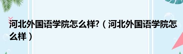 河北外國語學院怎么樣?(河北外國語學院怎么樣)
