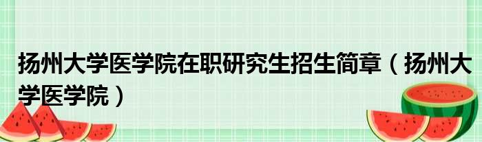 揚州大學醫學院在職研究生招生簡章(揚州大學醫學院)