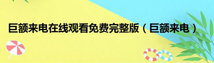 巨額來電在線觀看免費完整版(巨額來電)