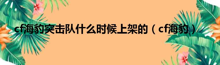 導讀 大家好,小霞來為大家解答以上的問題。cf海豹突擊隊什么時候上架的,cf海豹這個很多人還不知道,現在讓我們一起來看看吧!1、海豹突擊隊是絕