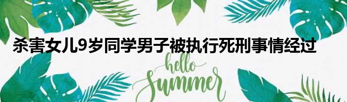 大家好,小霞來為大家解答以上的問題。殺害女兒9歲同學男子被執行死刑事情經過這個很多人還不知道,現在讓我們一起來看看吧!