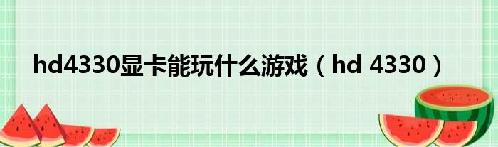 大家好,小霞來為大家解答以上的問題。hd4330顯卡能玩什么游戲,hd 4330這個很多人還不知道,現在讓我們一起來看看吧!