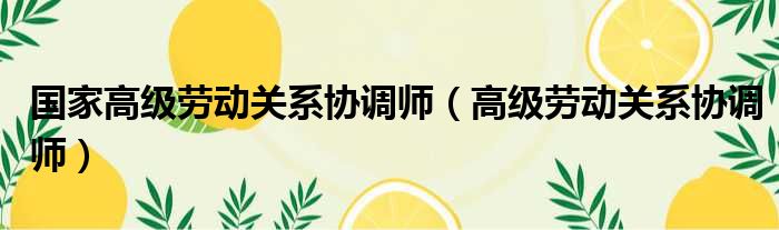 國家高級勞動關系協調師(高級勞動關系協調師)