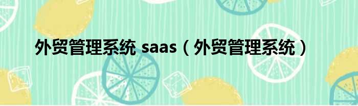 導讀 大家好,小霞來為大家解答以上的問題。外貿管理系統 saas,外貿管理系統這個很多人還不知道,現在讓我們一起來看看吧!1、外貿管理系統是指