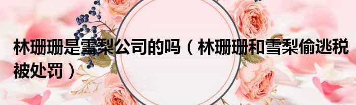 林珊珊是雪梨公司的嗎(林珊珊和雪梨偷逃稅被處罰)