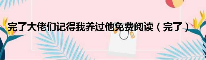 大家好,小霞來為大家解答以上的問題。完了大佬們記得我養過他免費閱讀,完了這個很多人還不知道,現在讓我們一起來看看吧!