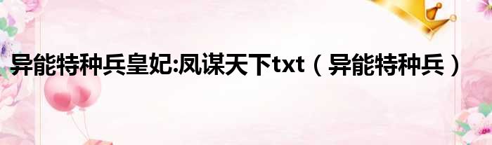 大家好,小霞來為大家解答以上的問題。異能特種兵皇妃:鳳謀天下txt,異能特種兵這個很多人還不知道,現在讓我們一起來看看吧!