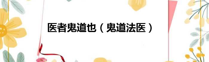 大家好,小霞來為大家解答以上的問題。醫者鬼道也,鬼道法醫這個很多人還不知道,現在讓我們一起來看看吧!