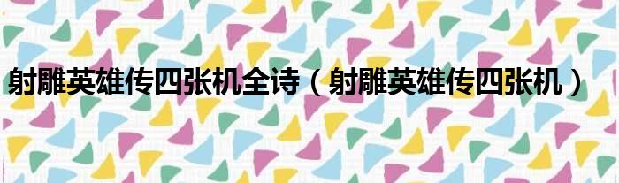 射雕英雄傳四張機全詩(射雕英雄傳四張機)