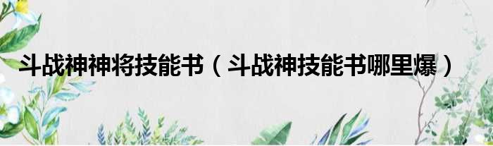 斗戰神神將技能書(斗戰神技能書哪里爆)