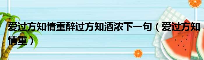 愛過方知情重醉過方知酒濃下一句(愛過方知情重)