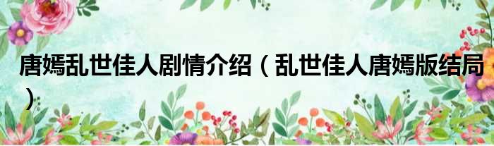 唐嫣亂世佳人劇情介紹(亂世佳人唐嫣版結局)