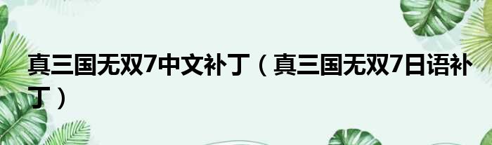 真三國無雙7中文補丁(真三國無雙7日語補丁)