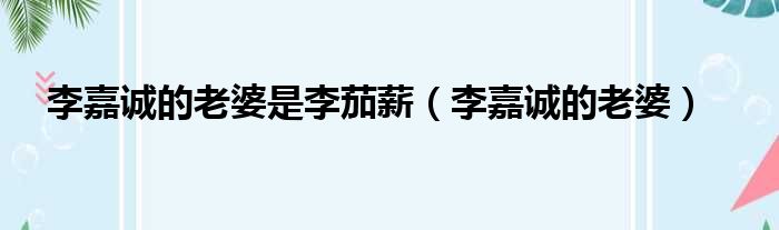 李嘉誠的老婆是李茄薪(李嘉誠的老婆)