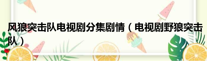 風狼突擊隊電視劇分集劇情(電視劇野狼突擊隊)
