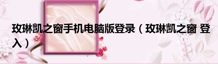 玫琳凱之窗手機電腦版登錄(玫琳凱之窗 登入)