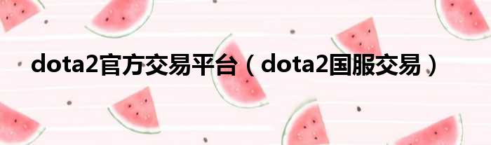 dota2官方交易平臺(dota2國服交易)