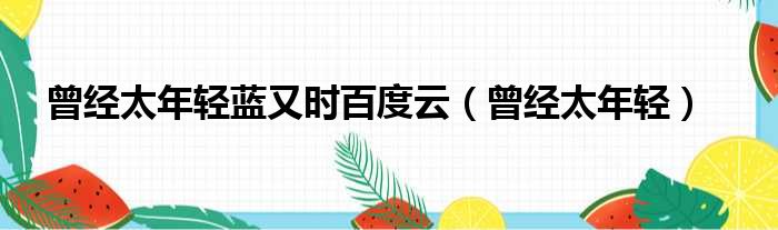 大家好,小霞來為大家解答以上的問題。曾經太年輕藍又時百度云,曾經太年輕這個很多人還不知道,現在讓我們一起來看看吧!