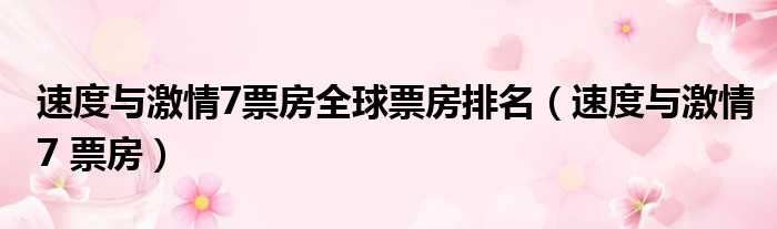 速度與激情7票房全球票房排名(速度與激情7 票房)