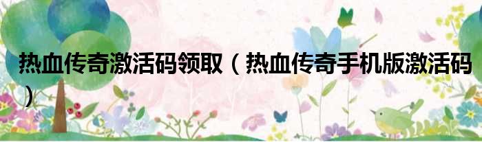 熱血傳奇激活碼領取(熱血傳奇手機版激活碼)