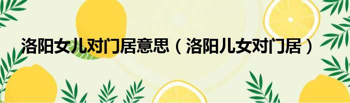 洛陽女兒對門居意思(洛陽兒女對門居)