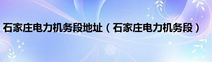 石家莊電力機務段地址(石家莊電力機務段)