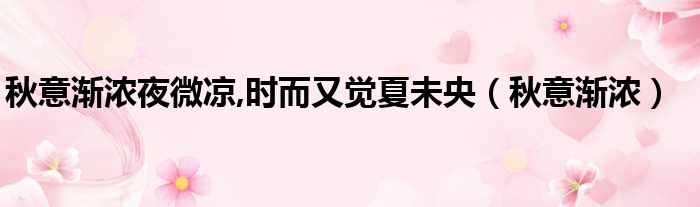 導讀 大家好,小霞來為大家解答以上的問題。秋意漸濃夜微涼,時而又覺夏未央,秋意漸濃這個很多人還不知道,現在讓我們一起來看看吧!1、秋意漸濃的