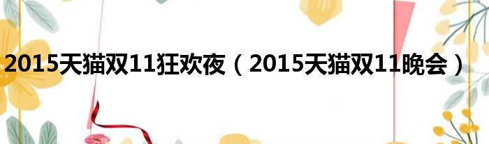 2015天貓雙11狂歡夜(2015天貓雙11晚會)