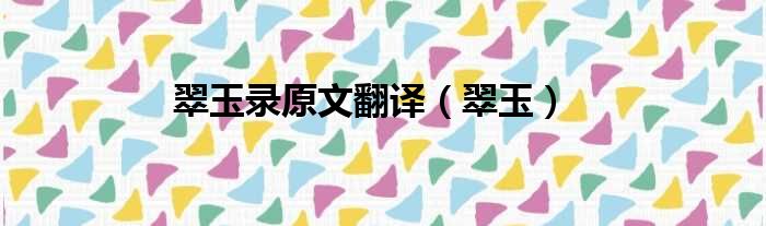 大家好,小霞來為大家解答以上的問題。翠玉錄原文翻譯,翠玉這個很多人還不知道,現在讓我們一起來看看吧!