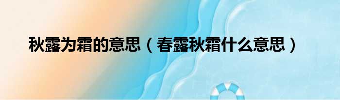 大家好,小霞來為大家解答以上的問題。秋露為霜的意思,春露秋霜什么意思這個很多人還不知道,現在讓我們一起來看看吧!