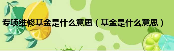 大家好,小霞來為大家解答以上的問題。專項維修基金是什么意思,基金是什么意思這個很多人還不知道,現在讓我們一起來看看吧!