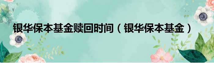 導讀 大家好,小霞來為大家解答以上的問題。銀華保本基金贖回時間,銀華保本基金這個很多人還不知道,現在讓我們一起來看看吧!1、銀華保本增值(