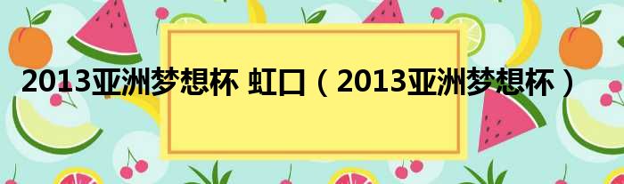 2013亞洲夢想杯 虹口(2013亞洲夢想杯)