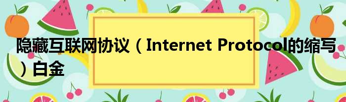 隱藏互聯網協議(Internet Protocol的縮寫)白金