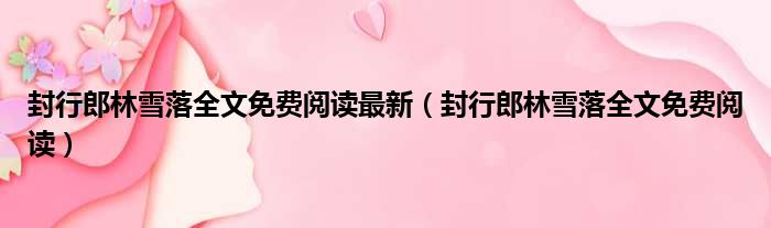 封行郎林雪落全文免費閱讀最新(封行郎林雪落全文免費閱讀)
