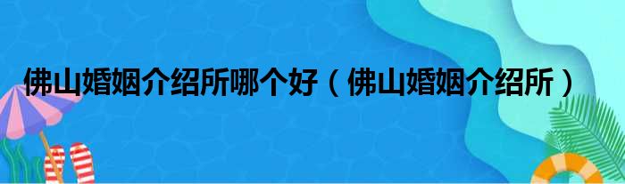 佛山婚姻介紹所哪個好(佛山婚姻介紹所)