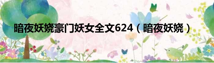 大家好,小霞來為大家解答以上的問題。暗夜妖嬈豪門妖女全文624,暗夜妖嬈這個很多人還不知道,現在讓我們一起來看看吧!