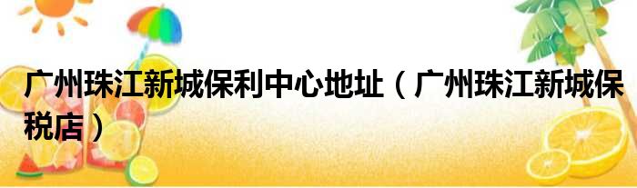 廣州珠江新城保利中心地址(廣州珠江新城保稅店)